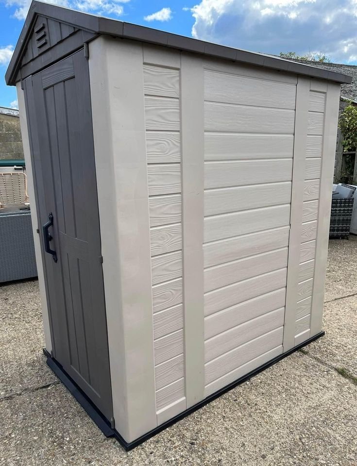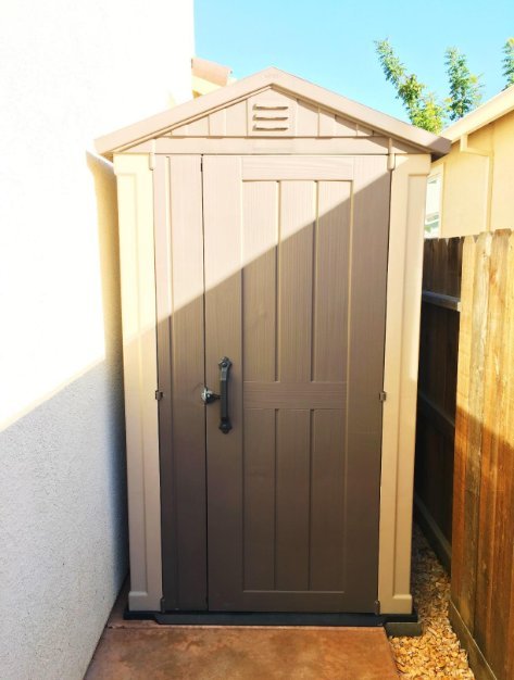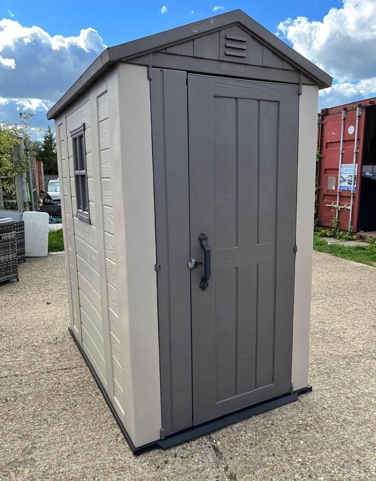 Keter Factor 4x6 Outdoor Storage Shed | Shop Patio Furniture, Garden Tools, Bicycle Accessories, Beach Chairs or Lawnmowers | Taupe & Brown