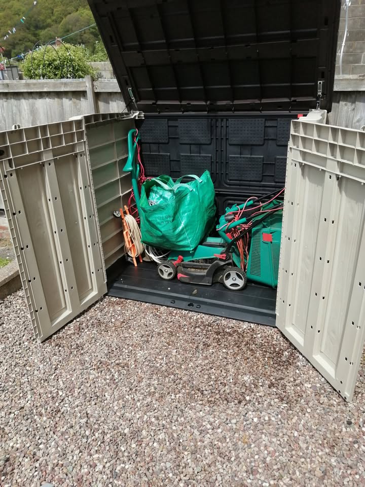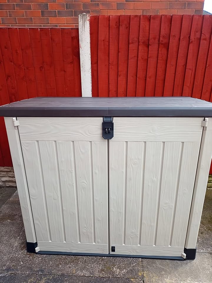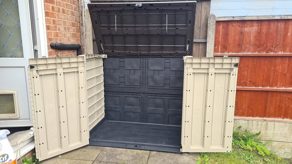 • Ideal outdoor storage solution for garden tools, equipment and x2 240 L wheelie bins