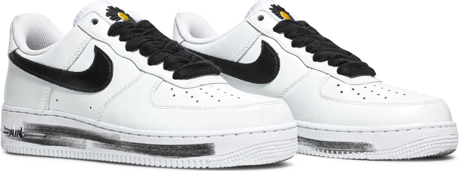 The G-Dragon x Nike Air Force 1 ‘07 ‘Para-Noise 2.0’ is the follow-up colorway to the 2019 Air Force 1 collaboration undertaken with the Korean hip hop star. This pair essentially flips the color blocking of the original, featuring a black Swoosh on a white leather upper, its top layer designed to wear away and reveal custom artwork created by G-Dragon. Additional flourishes include decorative eyelet pins, an embroidery daisy atop the tongue and crude brushstroke effects on the midsole.