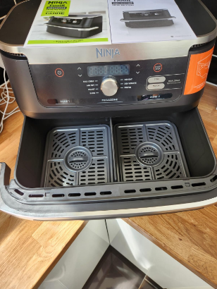 DetailFLEXDRAWER ADAPTS TO FIT EVERY MEAL: Remove the divider to transform 2 independent cooking zones into 1 extra-large 10.4L MegaZone to cook larger foods, traybakes & complete meals. Feeds 8+ people.- DUAL ZONE TECHNOLOGY: Cook 2 foods 2 ways, both finish at the same time. Cook mains & sides in 1 appliance, or cater to 2 different tastes. Fit up to a 2kg chicken or 1.5kg of fries in each 5.2L zone.
