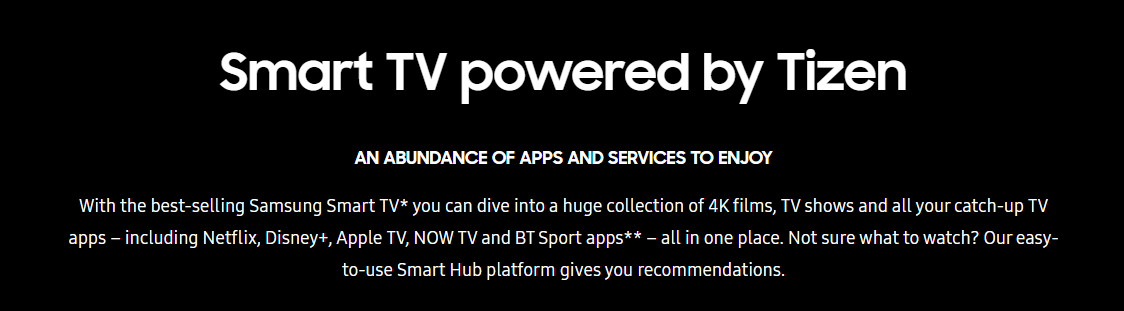 Supported Internet services Netflix, Disney Plus, Prime Video, BBC iPlayer, Apple TV