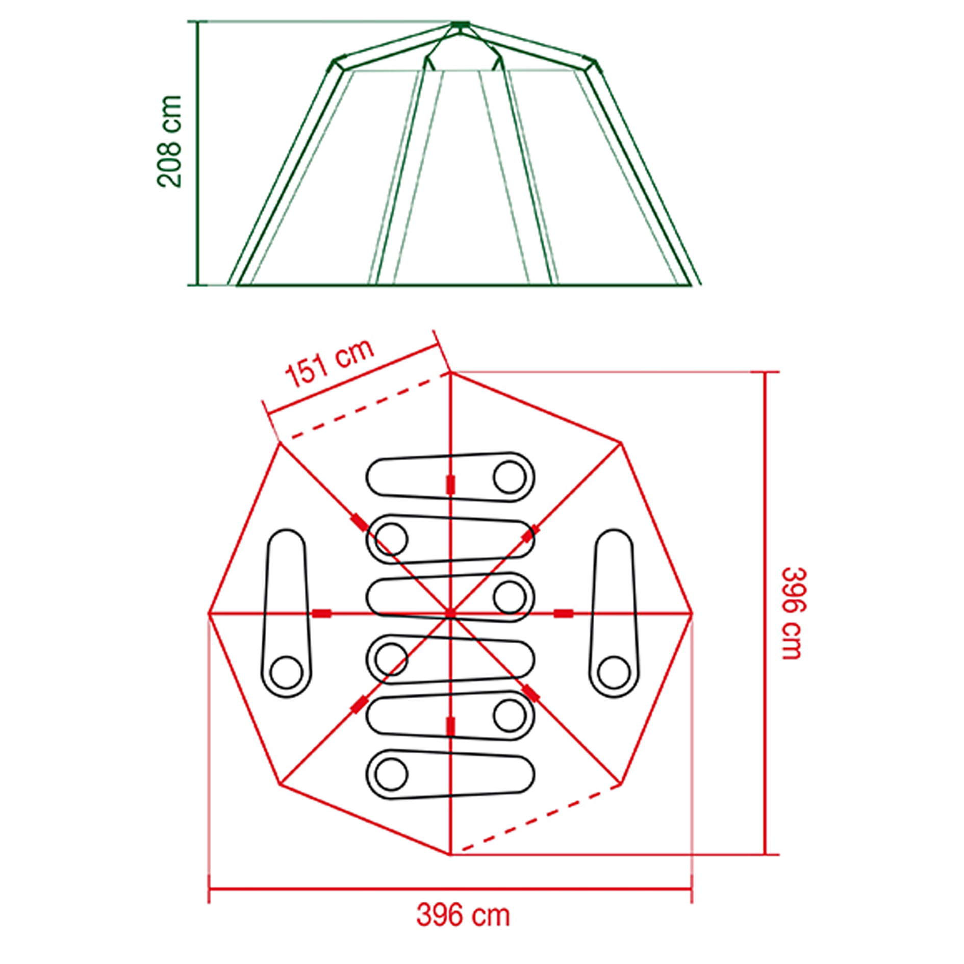 For ease of transportation and storage, the Octagon packs down to a convenient size and neatly fits into the include carry bag. The carry-bag features two durable wheels; this allows you to safely travel the tent from the car to your pitching spot!
